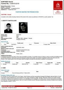 13 сентября 2018 года Генеральный секретариат Интерпола, на сосновании предоставленных материалов грузинской стороной 6 июля, принял решение объявить в международный розыск под «красным циркуляром», разыскиваемых грузинскими правоохранительными органами, Давида Гурциева и Алика Табоева. Информацию об этом распространяет МВД Грузии.